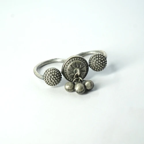 Make a bold ethnic statement with this beautifully designed Oxidized Silver Finish Adjustable Two Finger Ring. Crafted with intricate antique detailing, this unique ring spans two fingers, offering a trendy fusion of traditional charm and modern style. The oxidized silver finish adds a rustic, vintage look that pairs perfectly with ethnic and Indo-western outfits. Its adjustable design ensures a secure and comfortable fit across different finger sizes. Lightweight yet eye-catching, this two-finger ring is ideal for weddings, festive occasions, or everyday fashion. A must-have piece for those who love standout accessories with cultural flair.
